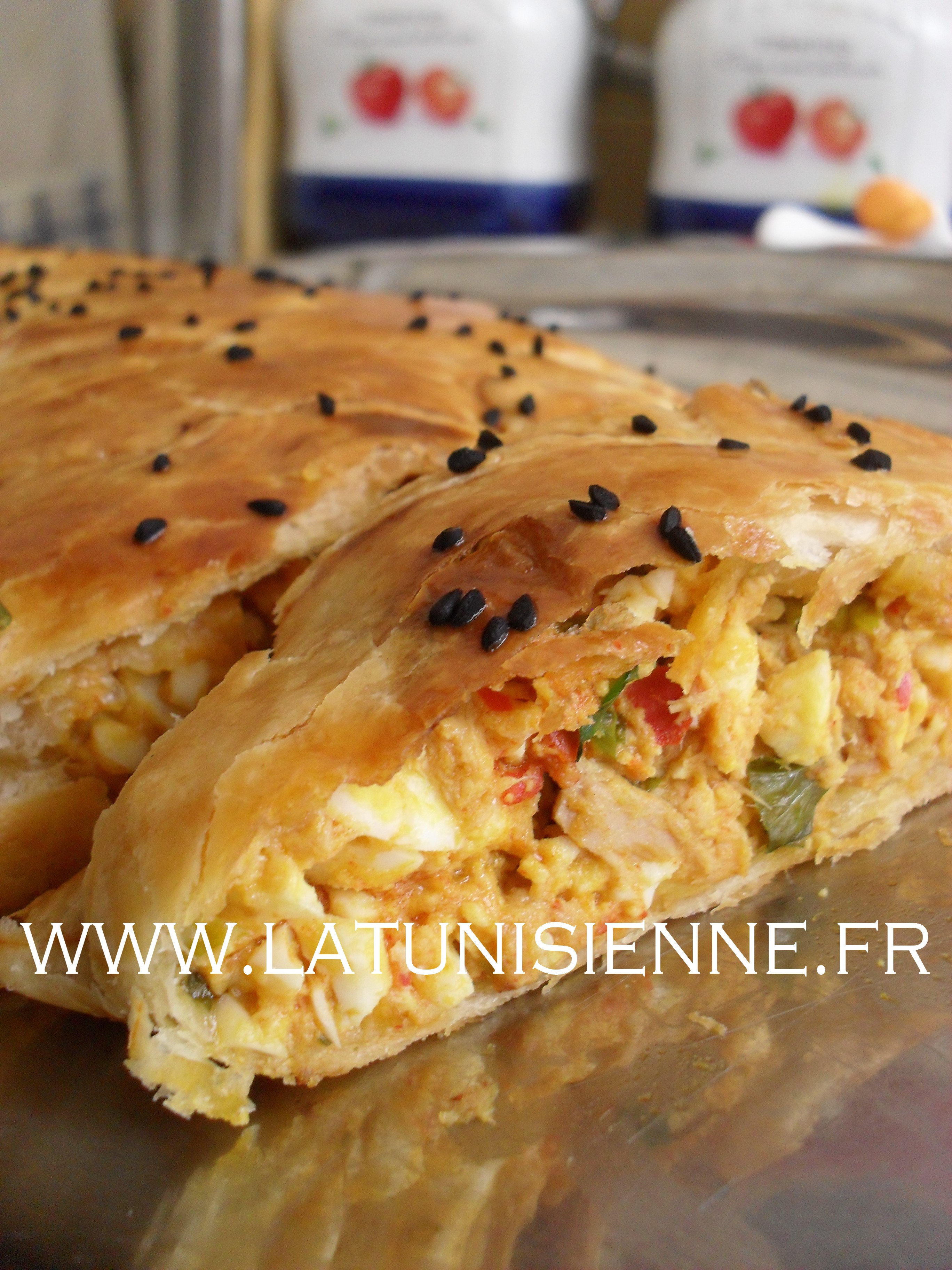 En Tunisie, il existe de délicieux petits feuilletés qu’on appelle « pâtés » vendus sous forme d’en cas, et j’en ai mangé des tonnes. J’ai réalisé la même farce, et préparé une sorte de pâté géant, pour retrouver les mêmes saveurs.